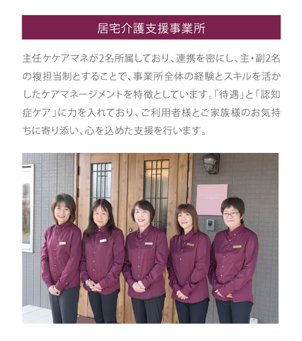 「居宅介護支援事業所」「デイサービスセンター」 「サービス付き高齢者向け住宅」 「ヘルパーステーションアポロ」 |